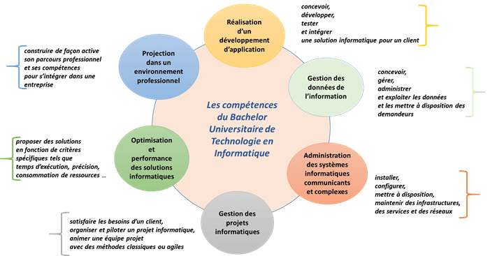 Cette formation se déroule sur 6 semestres qui correspondent à 180 crédits européens (ECTS) permettant de valider 6 compétences essentielles dans le développement informatique. L’étudiant aura le choix en 3ème année entre deux parcours déclinés à partir de ces 6 compétences dont les niveaux d’apprentissage seront plus ou moins poussés en fonction du parcours.